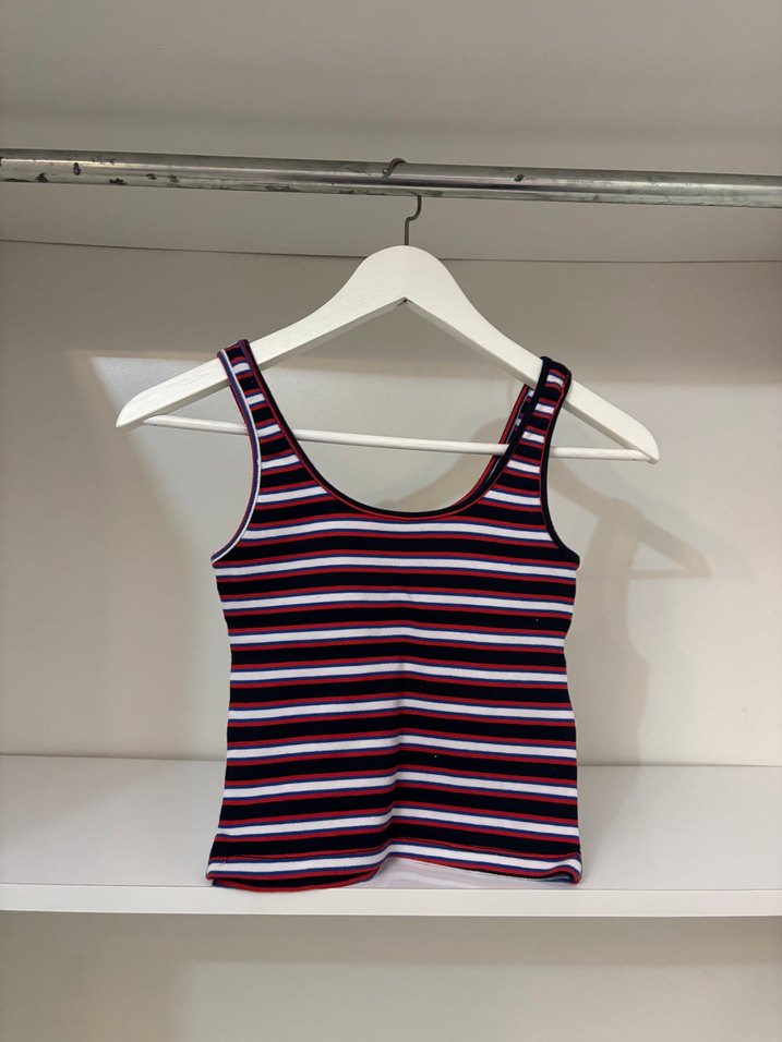 Kolsuz, dar kesim ve tekne yaka mini atlet. Koyu tonlarda çok renkli çizgili deseniyle, sentetik kumaştan üretilmiştir. Günlük sokak tarzı için uygun, zahmetsiz şıklık sunar.