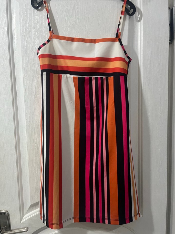 Çizgili, askılı mini elbise. hiçbir kusuru yok elden çıkarmak için uyguna koyuyorum ürünüdür marka temsili
