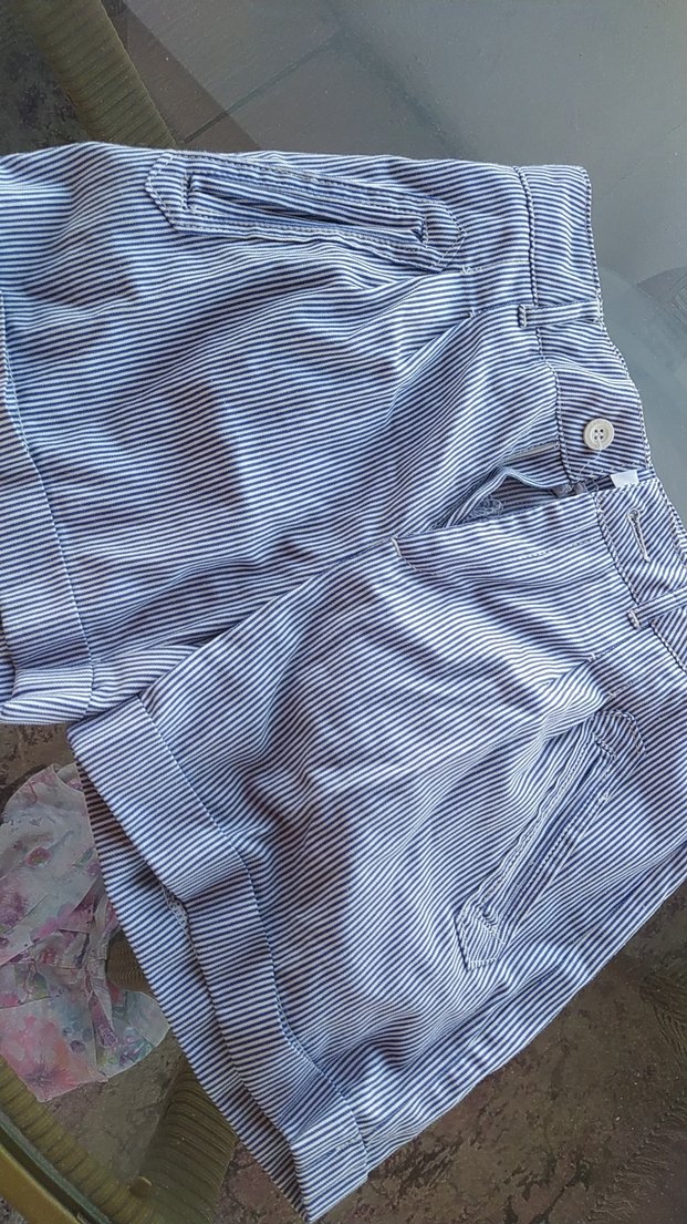Pamuklu, çizgili ve pileli detaylara sahip bol kesim hamile mini şort. Günlük rahat kullanım için uygundur.