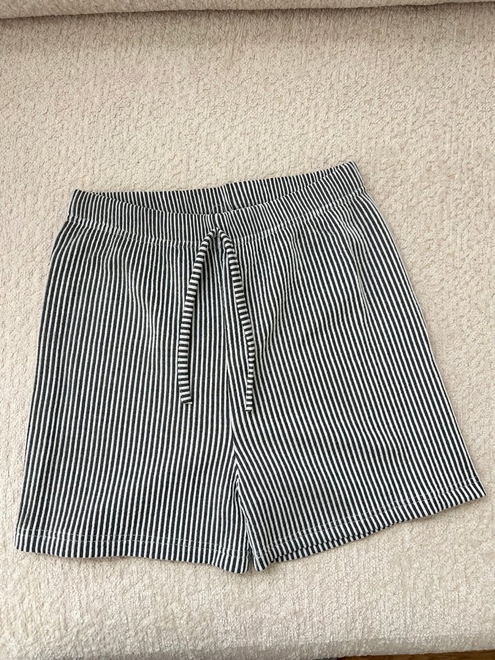 Yumuşak pamuklu kumaştan, çizgili ve pileli detaylı, bol kesim mini şort, günlük rahatlık için uygundur.