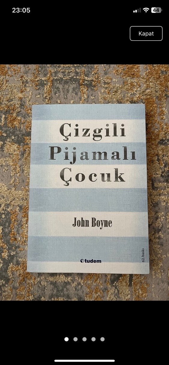 John Boyne'un "Çizgili Pijamalı Çocuk" adlı romanı, Tudem yayınlarından, çizgili kapak tasarımlı.