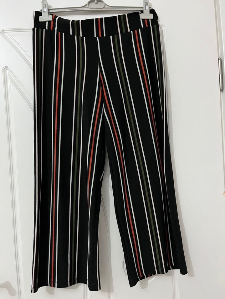 Çizgili Pilili Kadın Kumaş Pantolon
