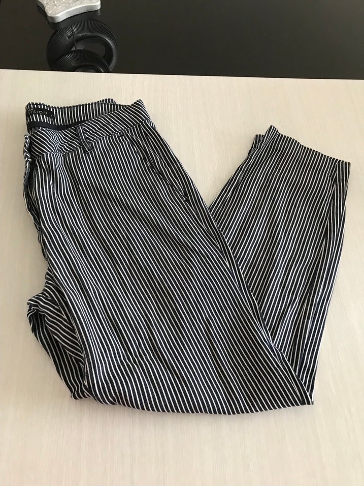 Çizgili Pilili Kadın Kumaş Pantolon