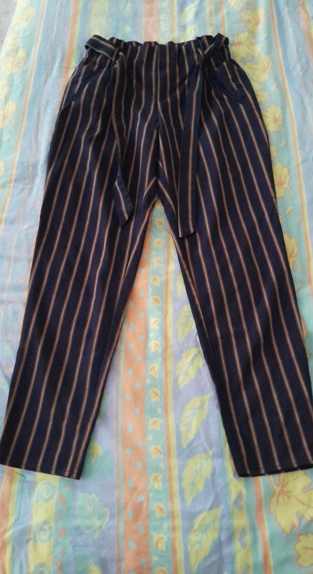 Kadınlar için çizgili, pilili, midi boy, regular fit kumaş pantolon. Sentetik kumaştan, günlük kullanım için uygun, koyu tonlarda çok renkli. 92 cm