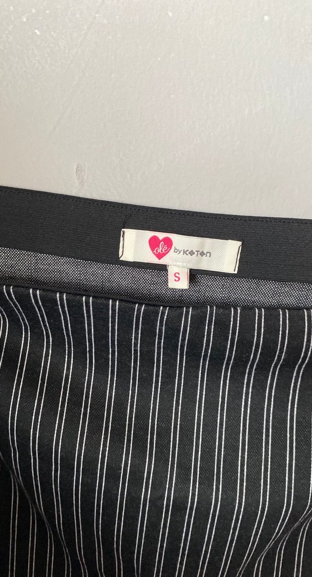Siyah ve gri çizgili, pilili ve beli oturan midi uzunlukta sentetik kumaştan hamile eteği. Günlük sokak stili için uygundur.