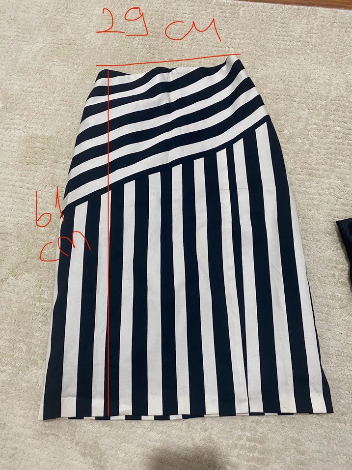 Kadınlar için çizgili ve pilili midi etek. Gri ve beyaz renklerde, sentetik kumaştan, günlük kullanım ve sokak stili için uygundur. Yanlardan yırtmaçları ve fermuar kısmında küçük deforme vardır görselde gözüküyor