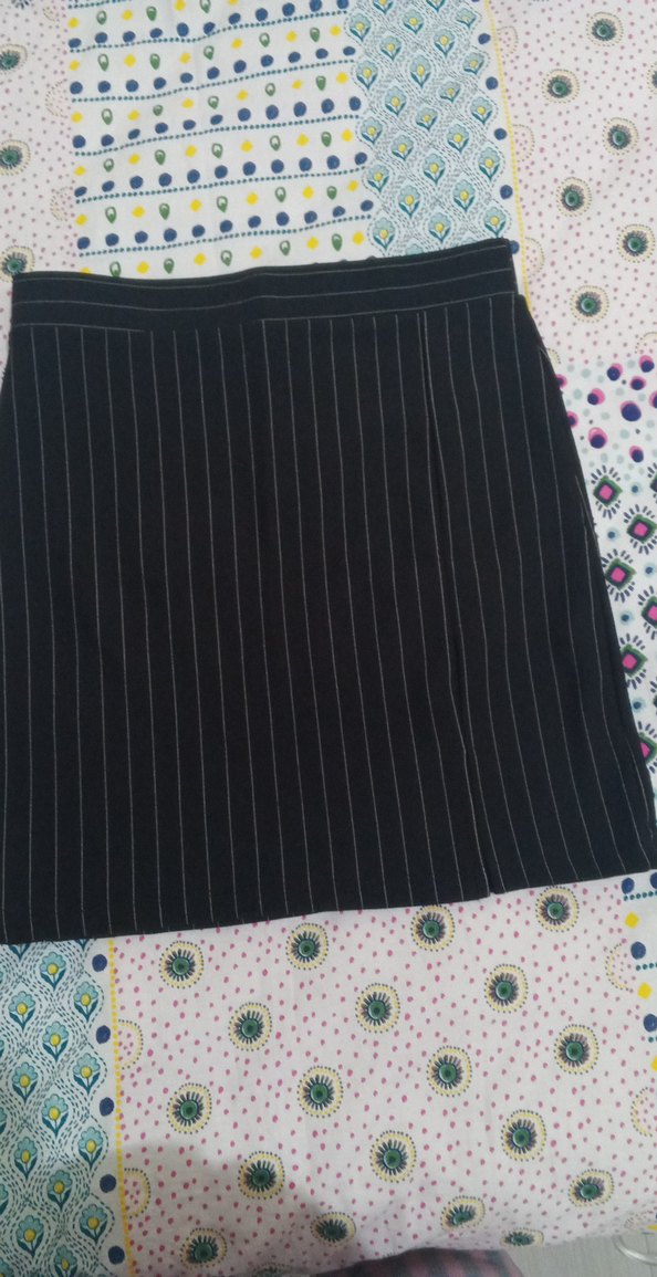 Sentetik kumaştan, çizgili ve pilili, normal boy midi etek. Ofis kullanımı için uygun, retro ve bohem tarzında.