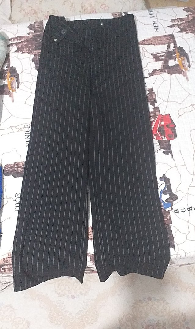 Ofis için uzun, regular fit, çizgili ve siyah kumaş pantolon.