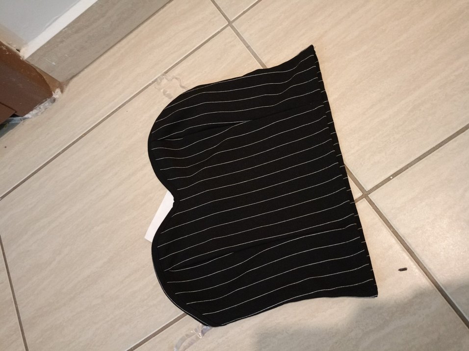 Yumuşak sentetik kumaştan, çizgili ve pilili tasarıma sahip, vücuda oturan siyah midi büstiyer Günlük kullanım için uygundur.