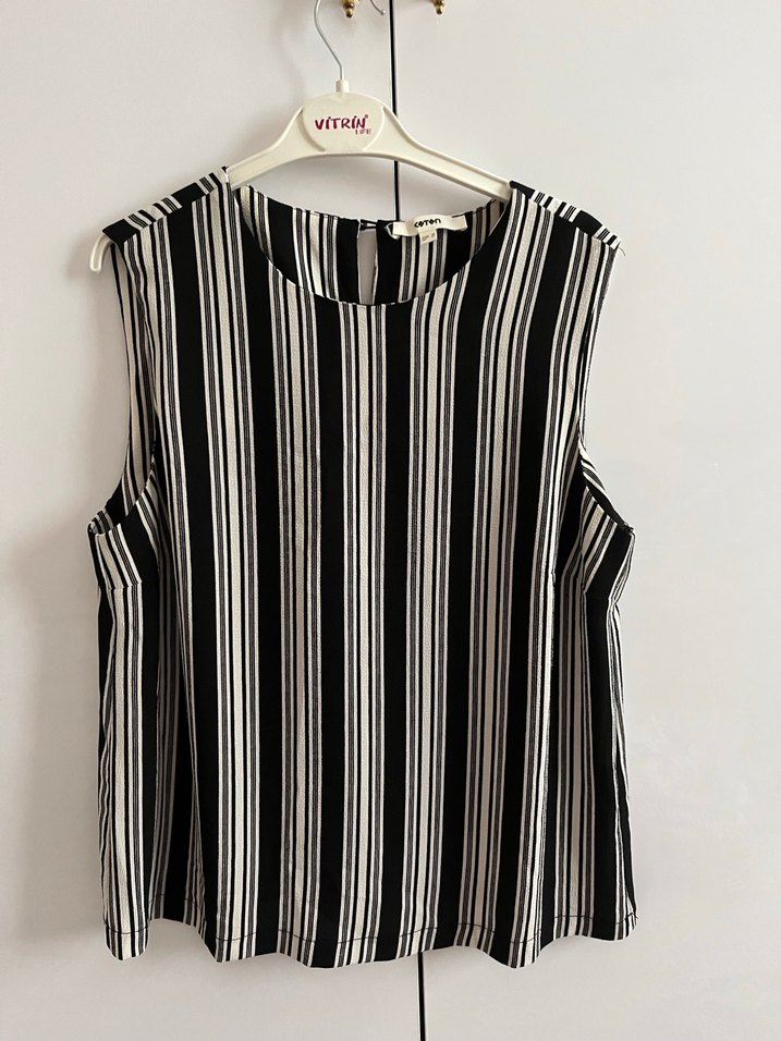 Çizgili Piliseli Siyah Kolsuz Bluz