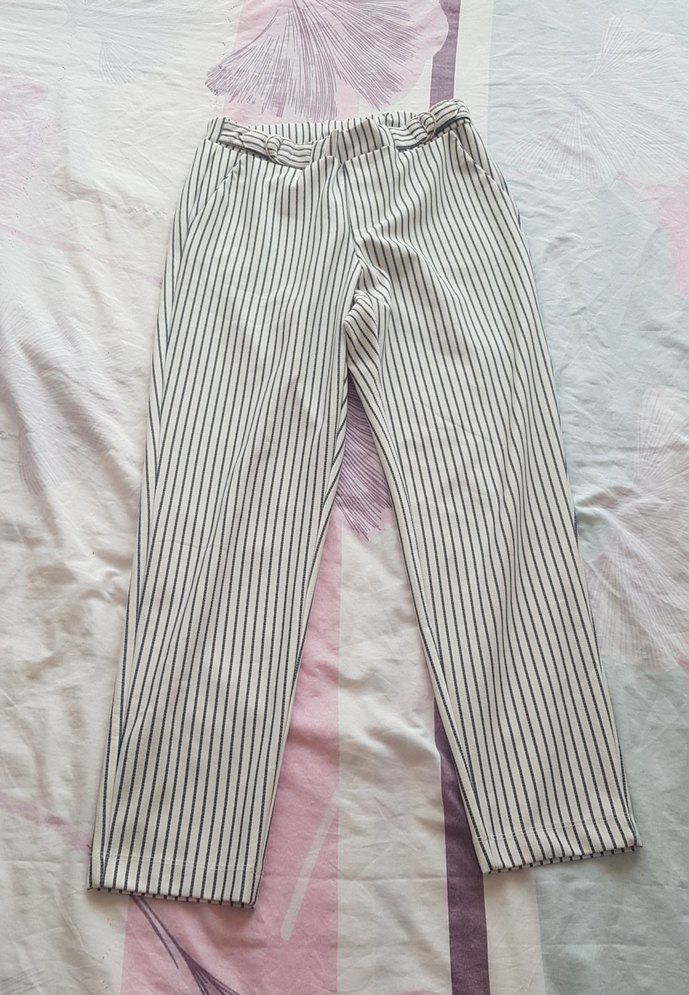 lacivert beyaz çizgili, pliseli ve regular fit kadın kumaş pantolon. Yumuşak sentetik kumaştan, günlük rahat Paris sokak modasına uygun.