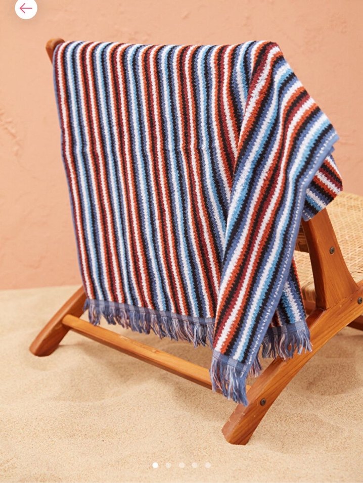 Renkli çizgili desene sahip, yumuşak dokulu ve püsküllü kenarları olan havlu