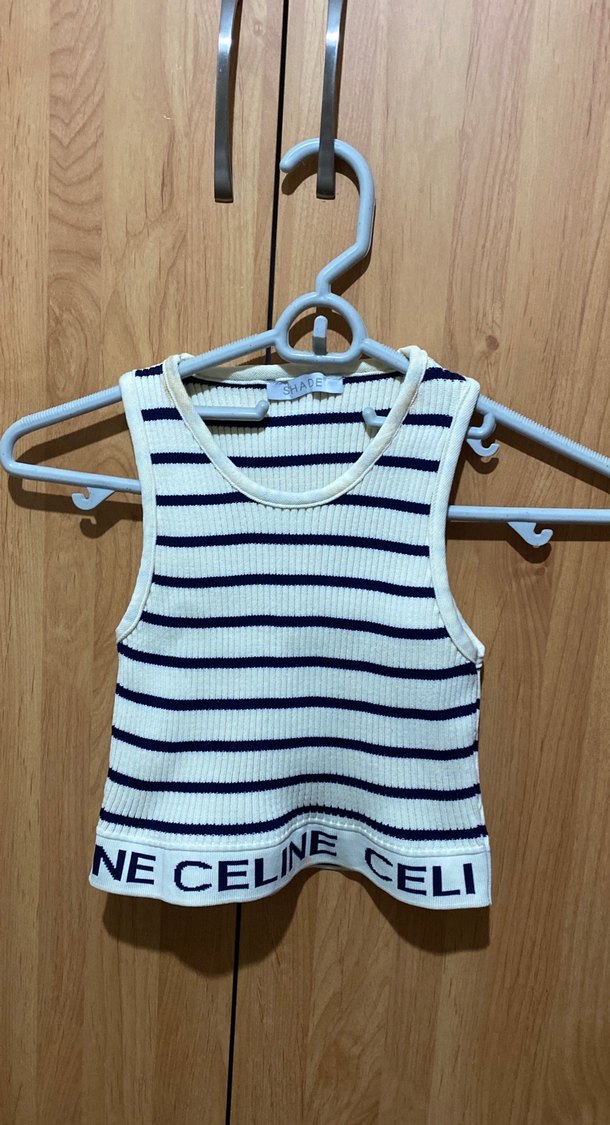 Yuvarlak yakalı, çizgili beyaz çocuk atlet. Alt kısmında 'NE CELINE' yazılı bant bulunur. Hafif dokulu kumaştan üretilmiştir.