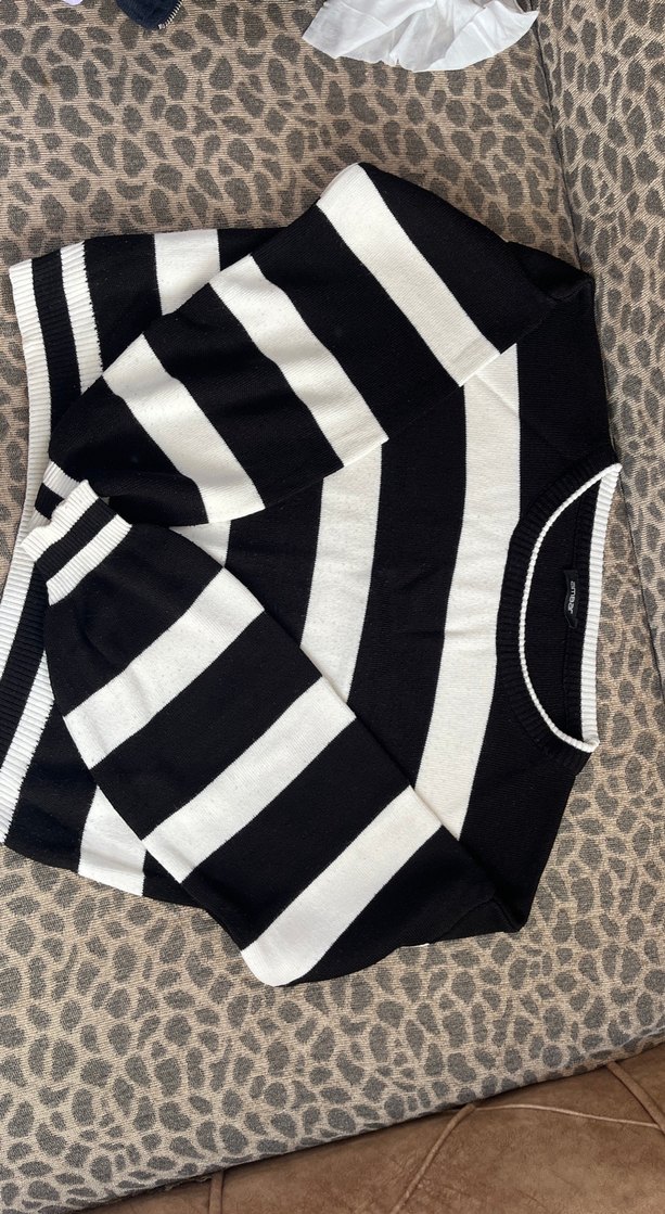 Çizgili Siyah Beyaz Kadın Triko Kazak