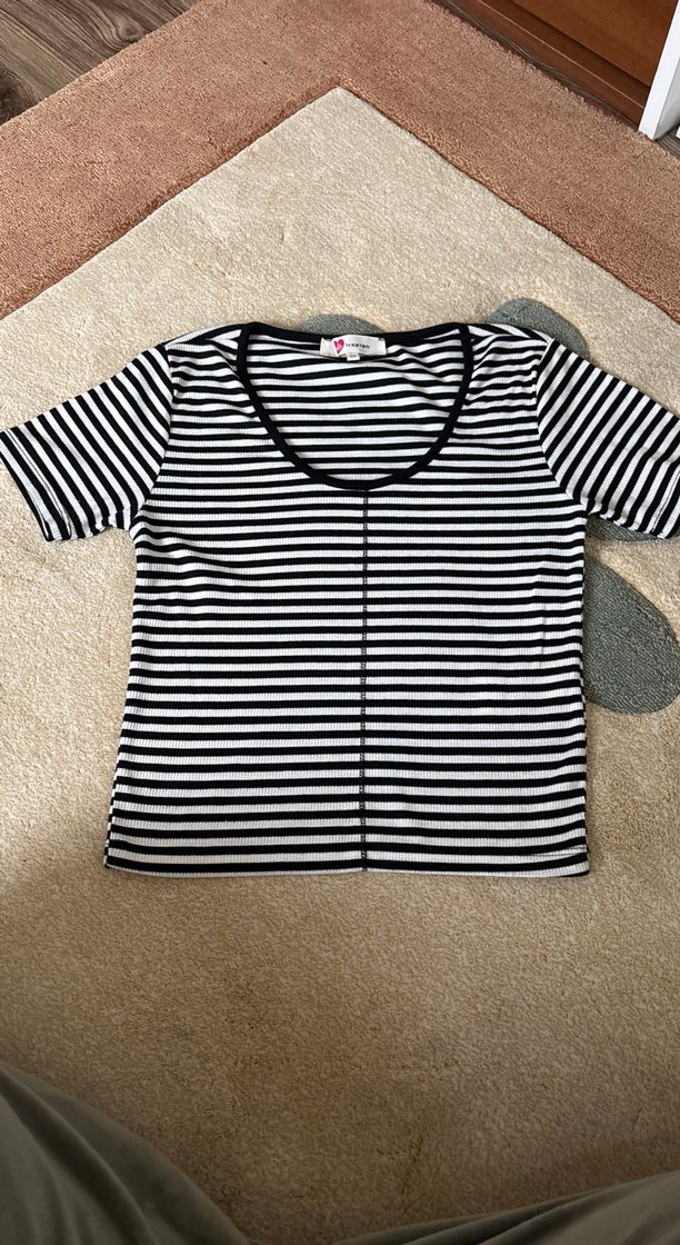 Çizgili Siyah Beyaz Kısa Kollu Hamile Bluzu