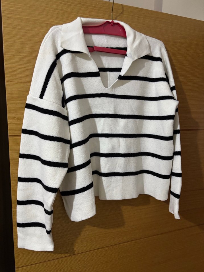 Çizgili siyah Beyaz Triko Kadın Kazak