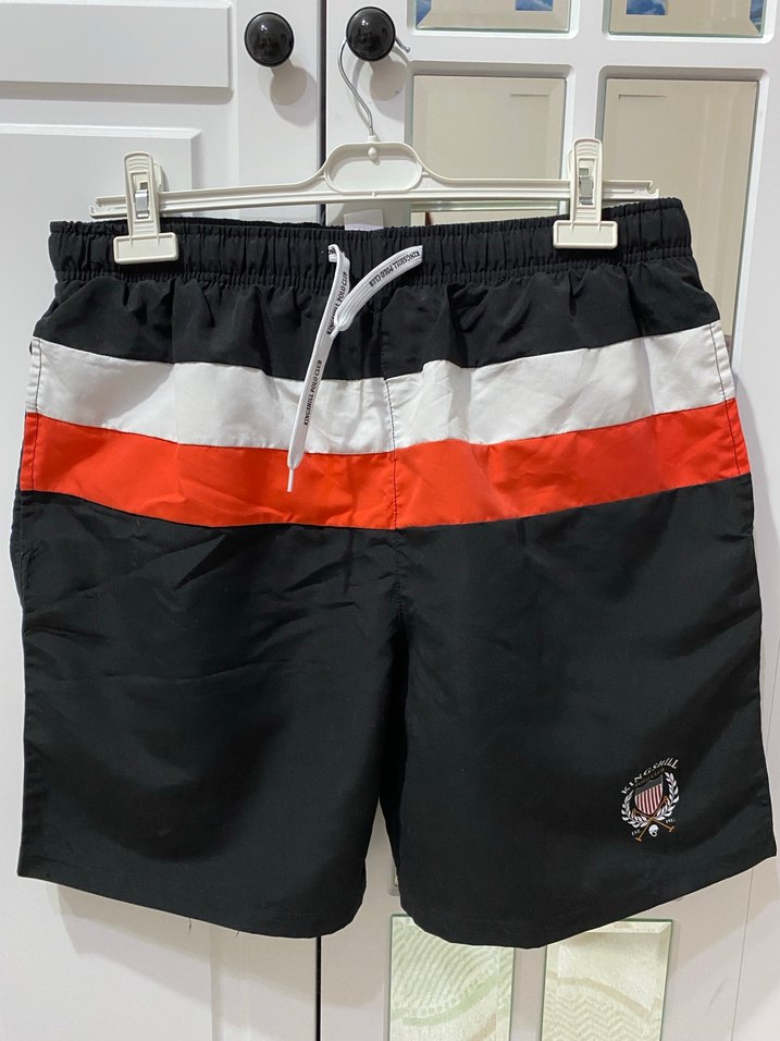 Kingshill polo club/ erkek deniz spor şort/ beden:xl/7 / beli lastikli ve 55 cm’e kadar genişliyor. Boyu 49 cm/ sorunu yok yeni gibi Siyah renkli, beyaz ve kırmızı çizgili, bel kemerli erkek mini deniz şortu. Rahat kesimi ve sokak stiline uygun tasarımı ile plajda kullanıma uygundur. ️