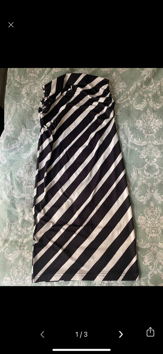Çizgili Siyah Gri Drapeli Uzun Etek H&M