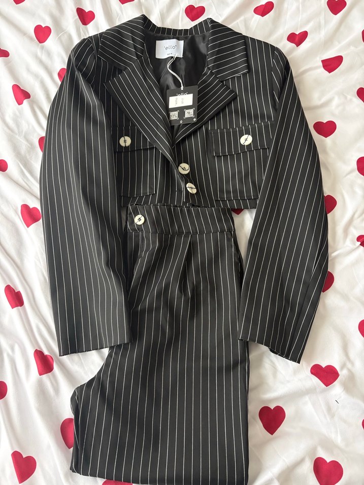 Çizgili Siyah Uzun Kadın Takım Elbise