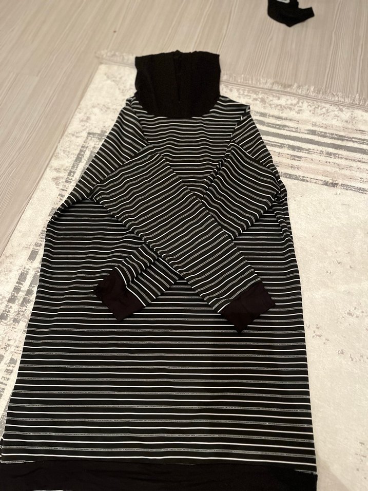 Uzun kollu, yüksek yakalı tunik. Yumuşak sentetik kumaştan, rahat ve salaş bir uyum sunar.