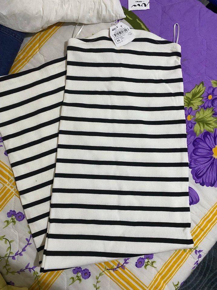 Çizgili straplez elbise