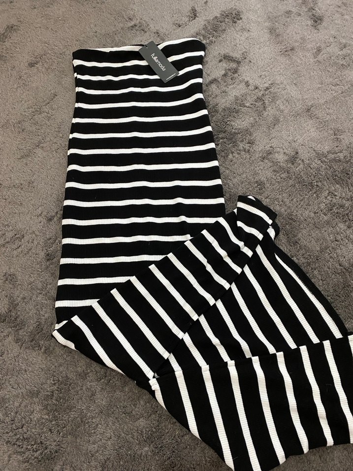 Çizgili Straplez Elbise