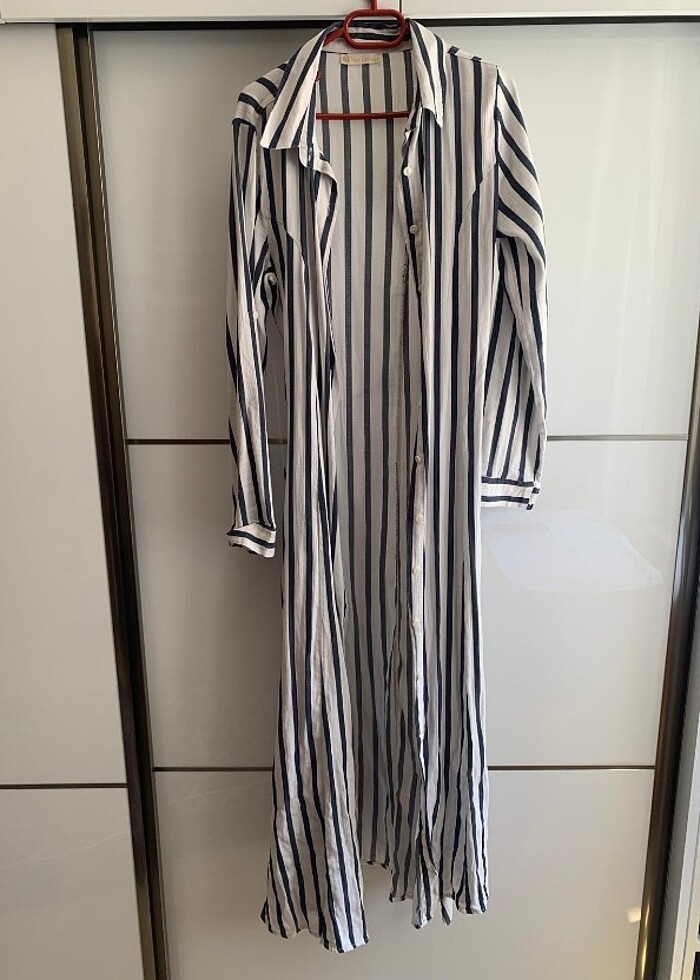 Çizgili uzun boy gömlek.defolu gömlek.kol altında defosu mevcuttur.dikilebilir.