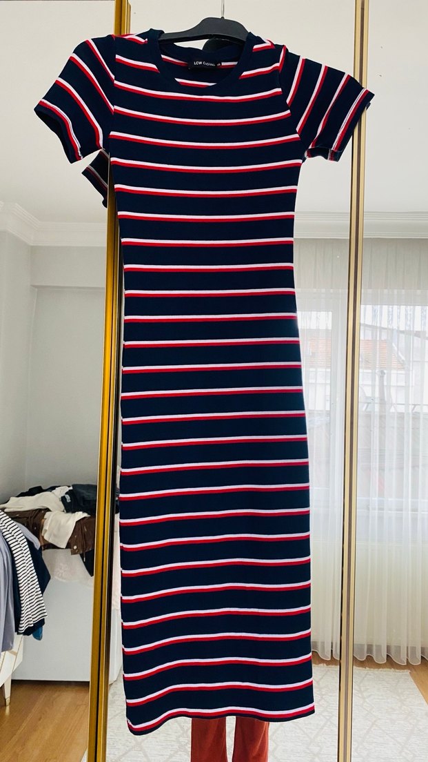 Çizgili, Uzun, Dar Kesim Kadın Elbise