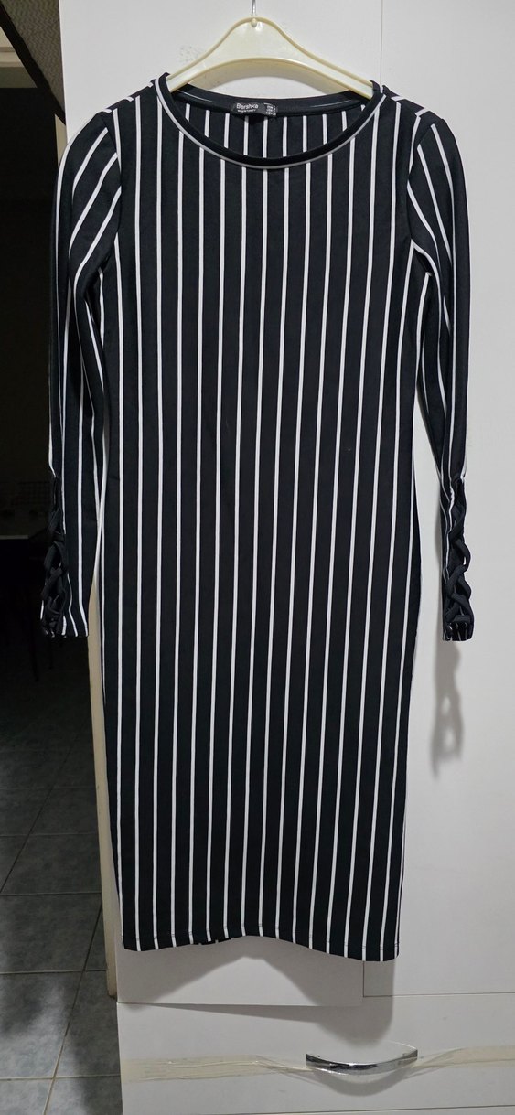 Çizgili, Uzun, Kayık Yaka Kadın Elbise