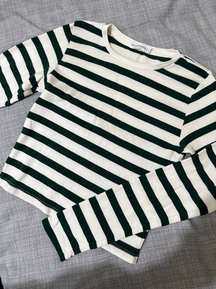 koyu yesil krem çizgili, uzun kollu ve vücudu saran body. Yuvarlak yaka ve normal boyda, rahat sentetik kumaştan üretilmiştir.