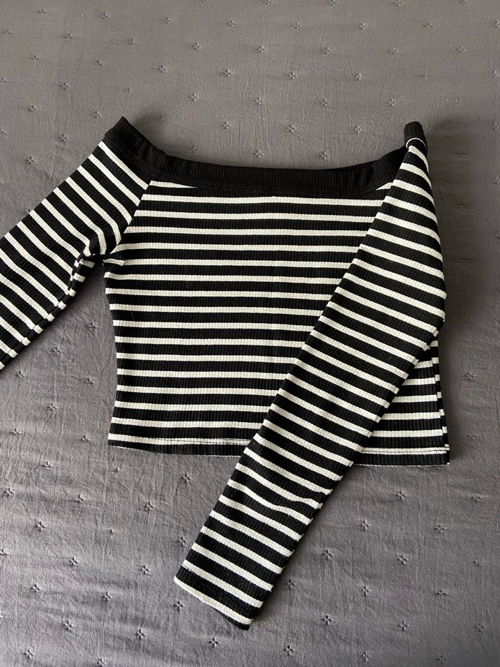 Çizgili Uzun Kollu Crop
