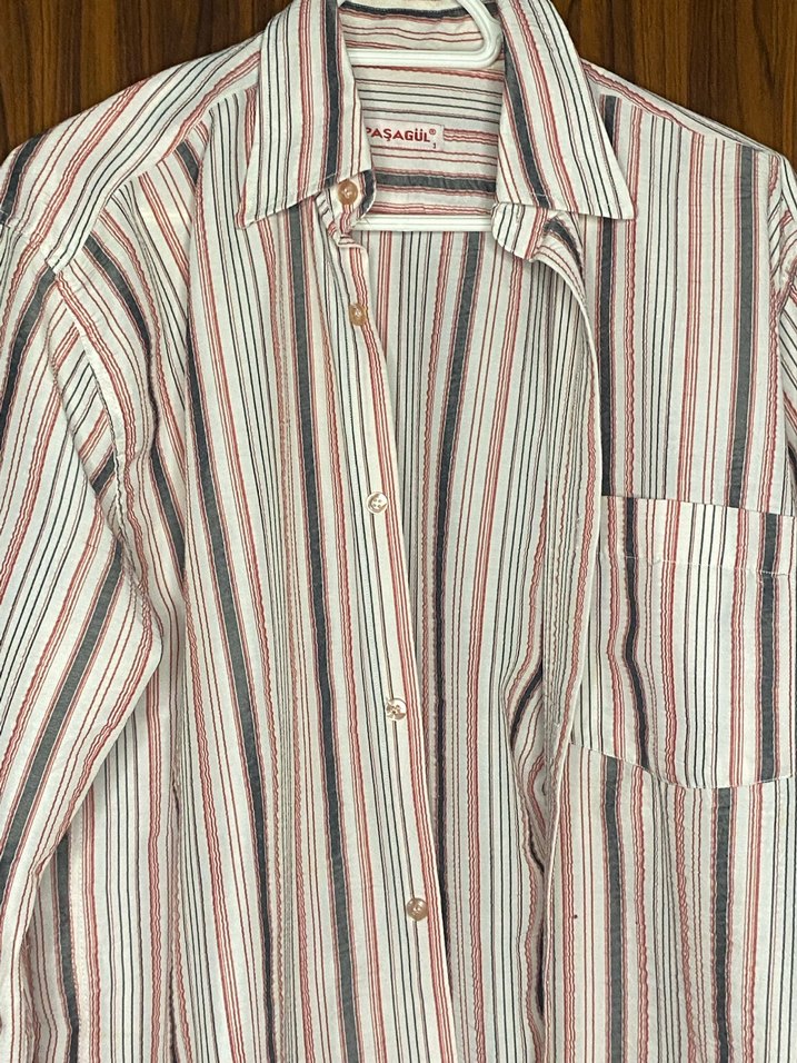 Düğmeli, uzun kollu ve kesik yakalı erkek gömleği. Gri ve çok renkli çizgili desene sahip, regular fit ve uzun boy. Tekstil malzemeden üretilmiştir. ASAGUC etiketlidir.