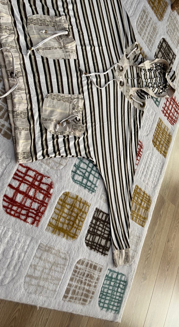 Geniş kesim, uzun kollu ve tekne yakalı hamile bluzu, düğme detaylı ve çizgili desenli. Sokak modası ve avangard tarzı bir arada sunar. Beyaz ve gri tonlarında, günlük kullanıma uygun.