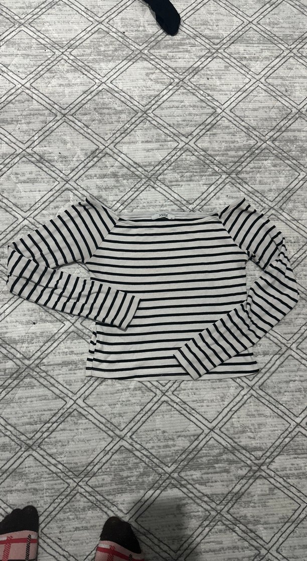 Çizgili Uzun Kollu Kadın Crop Top