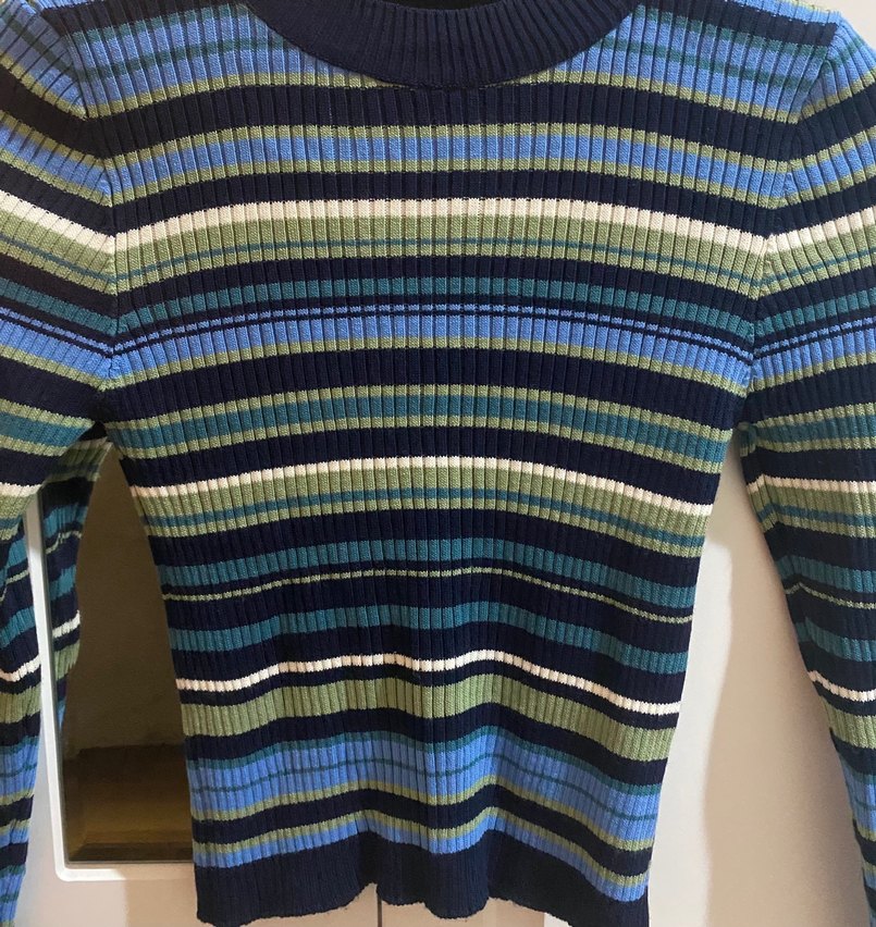 Çizgili, uzun kollu, ince ve vücuda oturan kadın triko. Bisiklet yaka ve normal boyda, günlük rahat kullanıma uygundur. Trendyol milladan aldım, birkaç kez giyildi fakat hiçbir kusuru yok. Vücudu saran yapıda.