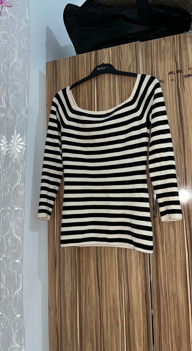 Uzun kollu, tekne yaka ve çizgili desene sahip, dar kesim triko bluz. Günlük sokak stiline uygundur.