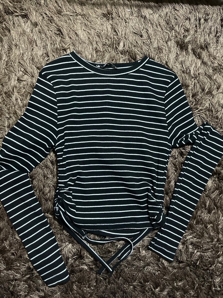Çizgili Uzun Kollu Kadın Triko crop