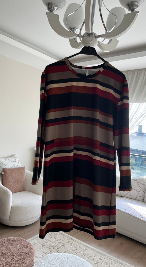 Çizgili Uzun Kollu Midi Tunik