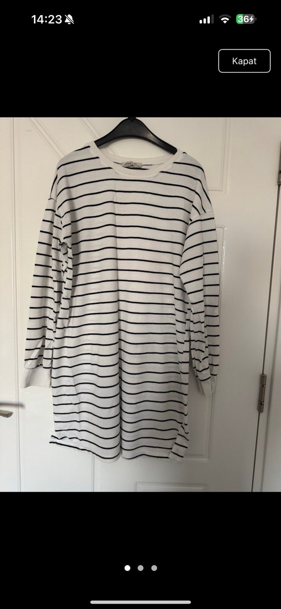 Çizgili Uzun Kollu Pamuklu Midi Tunik
