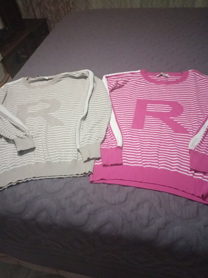 Salaş kesim, uzun kollu, bisiklet yaka, çizgili örgü kadın kazaklar. Büyük "R" detayı ile pembe ve vizon renk seçenekleri mevcuttur. Kullanıma engel bir durumları yoktur sadece tüylenme mevcuttur o da fiyata yansıtılmıştır... Gögüs ölçüsü 53 cm boyu da 62 cm dir full esnektir 42 ve 44 arası bedenlere olur...