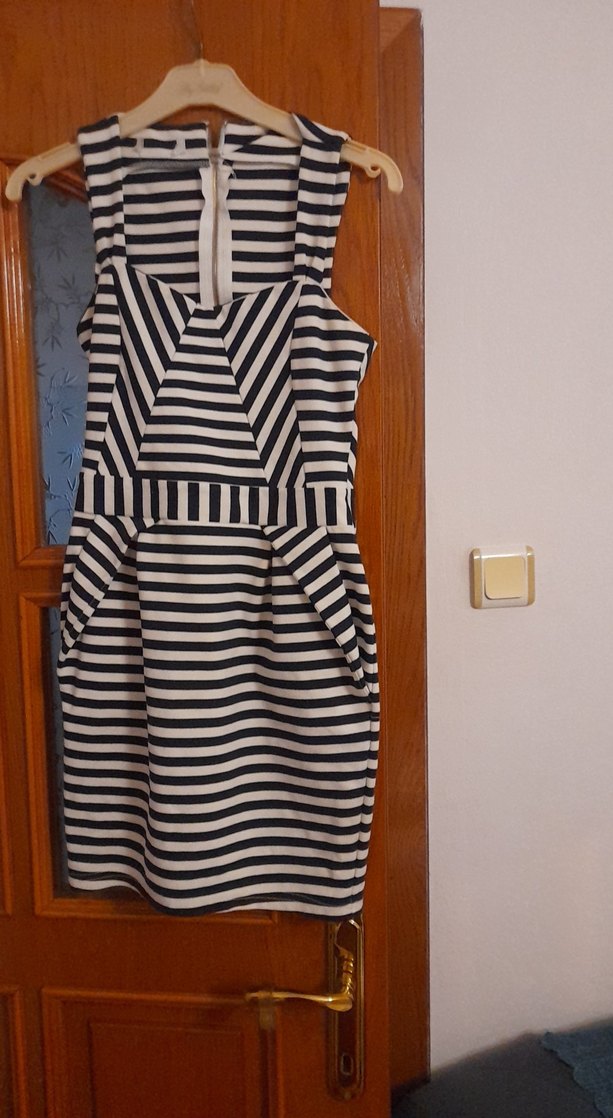 Çizgili V Yakalı Midi Elbise