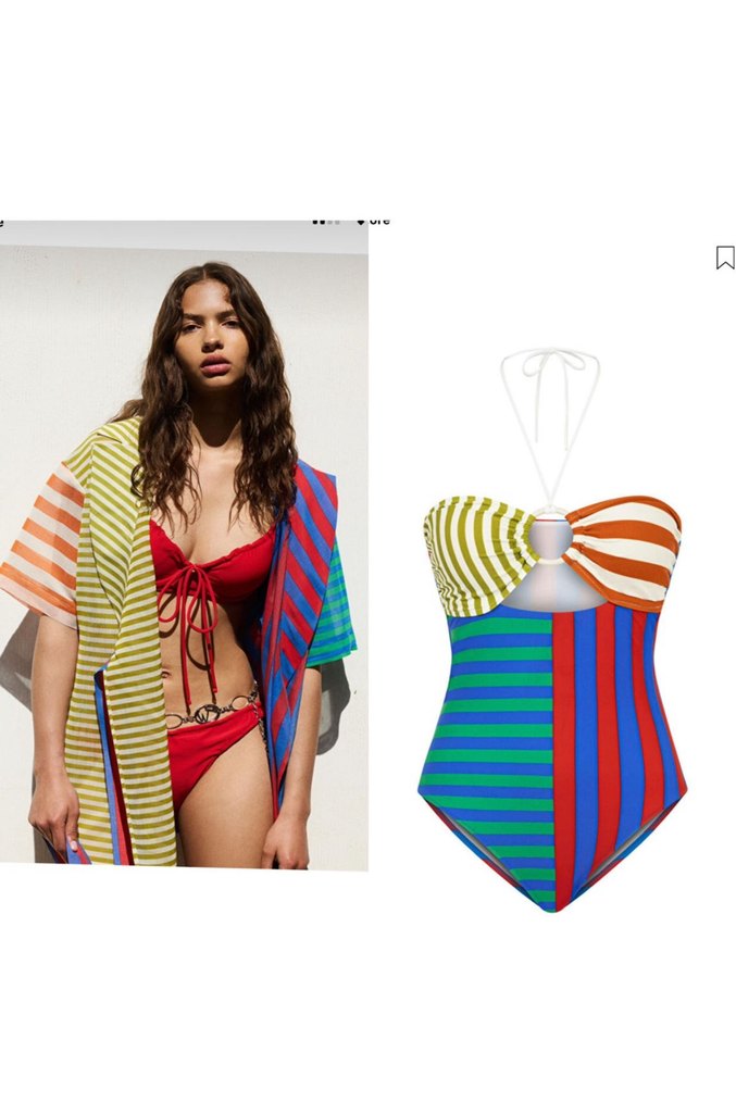 Hafif ve renkli çizgili plaj kimonosu, gevşek kısa kollu, mayo üzerine rahatça giyilebilir. Canlı ve gündelik yaz stili. İkili takım etiketli be sıfırdır .hijyen bandı üzerindedir. M bedendir