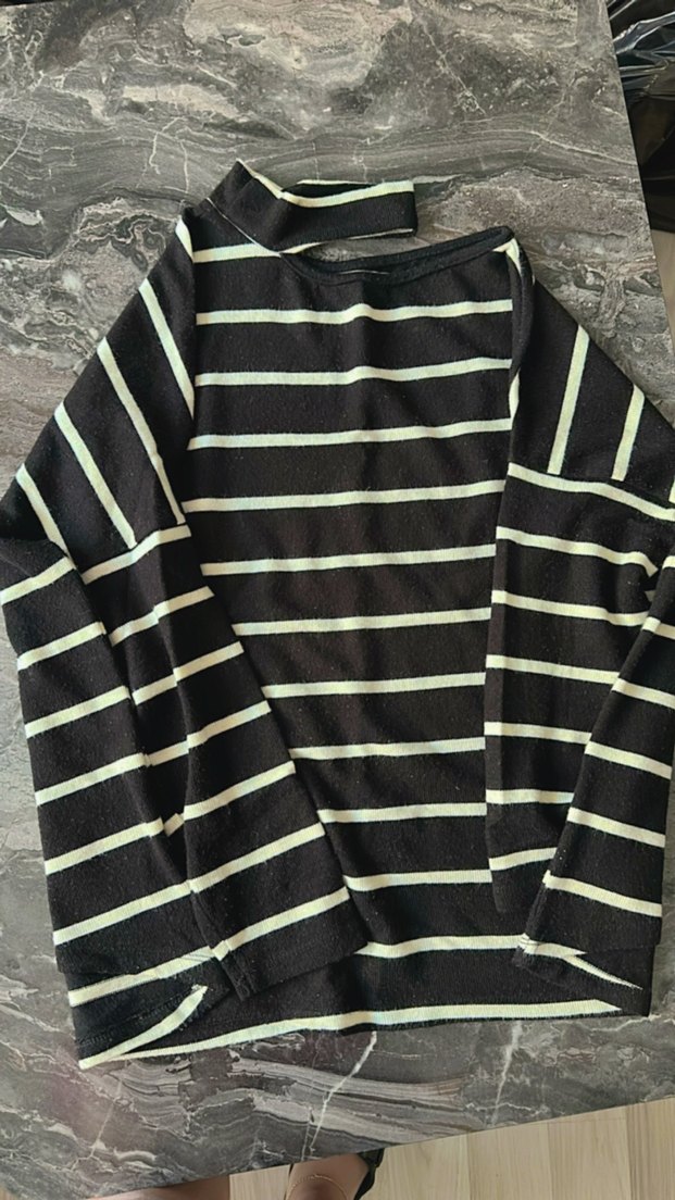 Çizgili yarım Boğaz detaylı Kadın Kazak
