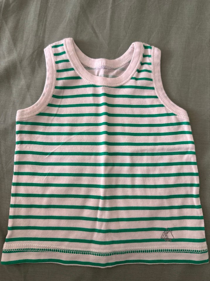 Çizgili yeşil renk çocuk atlet, yumuşak kumaştan üretilmiştir. Sıcak havalarda katmanlama için uygundur.