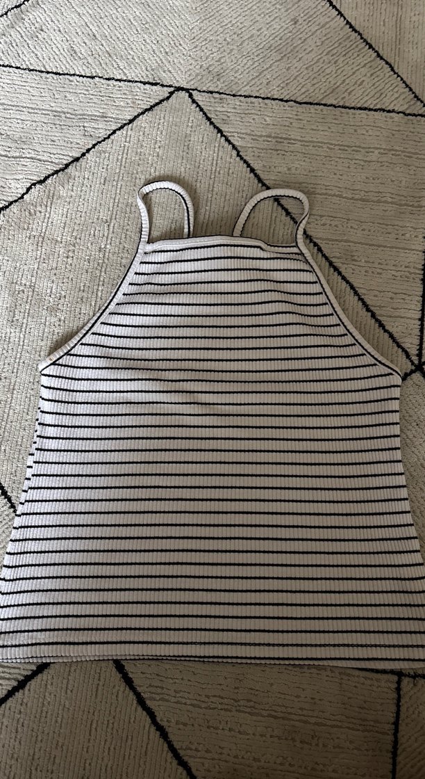 Çizgili Yüksek Yakalı Kolsuz Crop Top