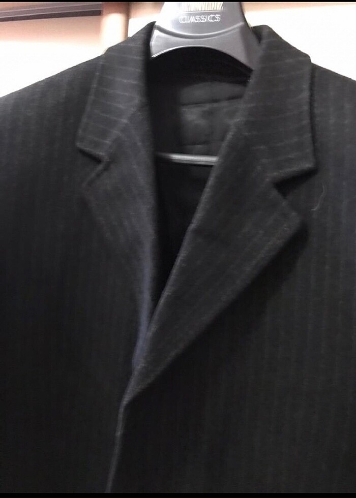 Ürün hiç giyilmedi-Kaşmir Kaban-siyah üzeri çizgili