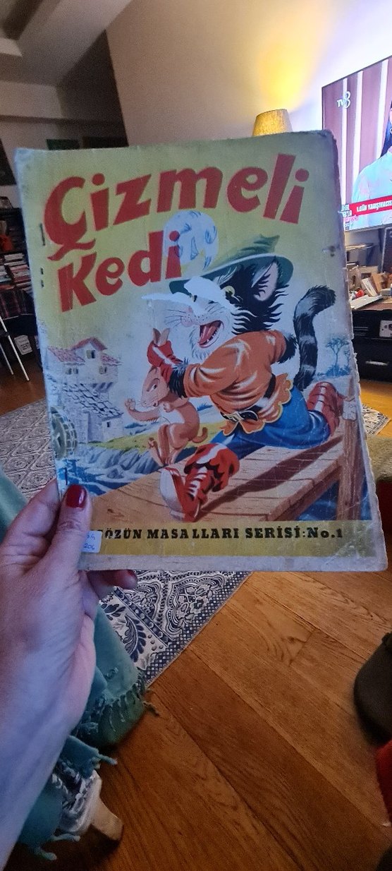 ÇİZMELİ KEDİ Özün Masalları Serisi No: 1 Bir masal kitabından fazlası… Bu baskı, Çizmeli Kedi’nin Türkiye’de çocuk edebiyatının temel taşlarından biri olduğu yıllardan; bol resimli, güçlü renkli, anlatımı kadar görsel diliyle de hafızaya kazınan klasik bir edisyon. Kitabın iç sayfalarında dönemin ruhunu yansıtan,"Türkiye İş Bankası"nın çocuklara tasarruf bilinci aşılamayı amaçlayan illüstrasyonlu reklamları yer alıyor. Bugünden bakıldığında bu reklamlar, kitabın değerini düşüren değil; aksine onu dönemiyle birlikte koruyan çok özel ayrıntılar. Masal anlatımı sade, çizimler güçlü ve karakterler oldukça canlı. Bugünün steril çocuk kitaplarından farklı olarak; eğiten, düşündüren ve çocukla konuşan bir dili var. Tam da bu yüzden nostaljik olduğu kadar zamansız. Hem çocukluk kütüphaneleri için Hem koleksiyoncular için Hem de vitrinlik bir kültür parçası Bu kitap, yalnızca bir masalı değil; bir dönemin çocukluğunu, pedagojisini ve estetik anlayışını taşıyor.