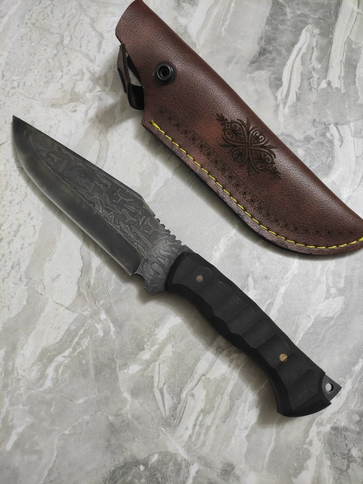 ck75 sert çelik yanında işlemeli kahverengi deri kılıflı