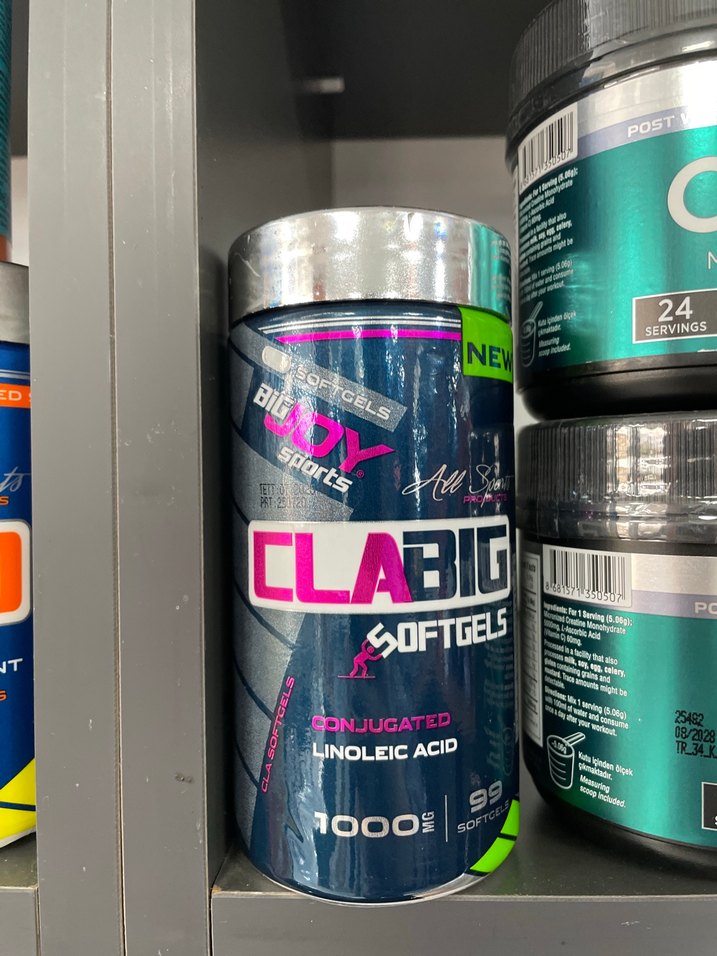 Clabig Softgels, 1000 mg konjuge linoleik asit içerir. Koyu gri renkte, 99 yumuşak jel kapsül içerir.
