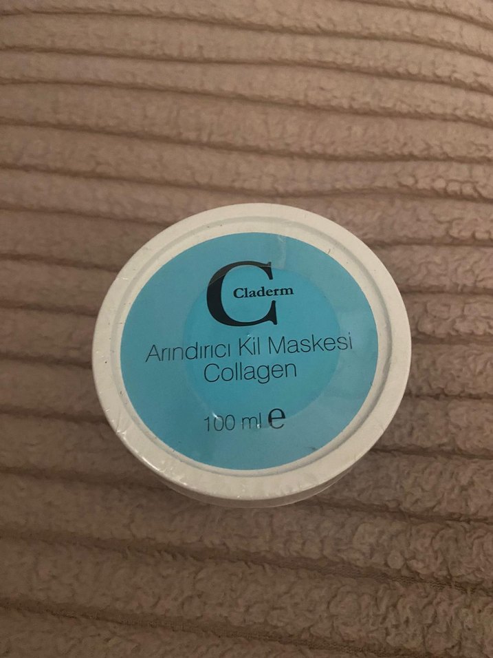 Claderm Collagen içeren arındırıcı kil maskesi, 100 ml kutuda cildi temizler ve canlandırır.